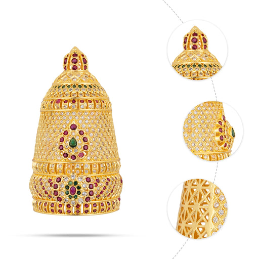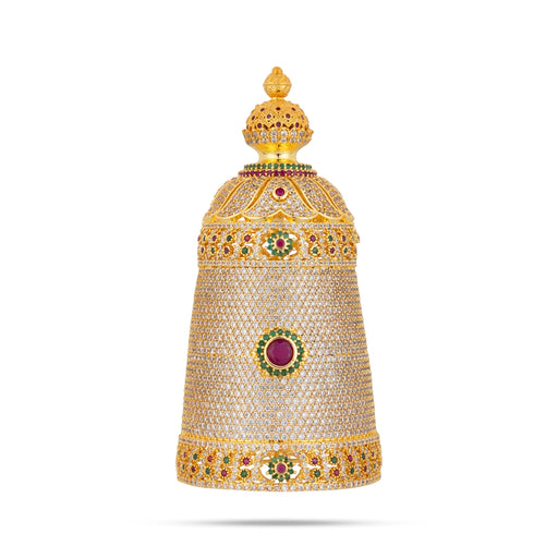 • Full Crown - 3 x 1.5 Inches | Multicolour Full Stone Kireedam / Full Mukut / Full Kiridam for Deity