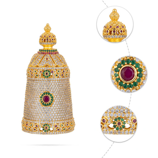 • Balaji Half Stone Crown - 1.25 X 0.75 Inches | Multicolour AD Stone Kireedam/ Kiridam/ Mukut For Deity Decor