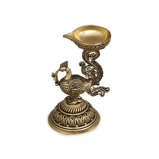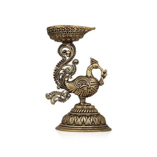Peacock Design Vilakku - 2 X 3.5 Inches | Brass Diya / Antique Polish / Mayil Deepam For Pooja