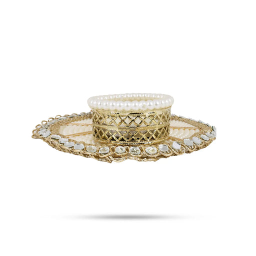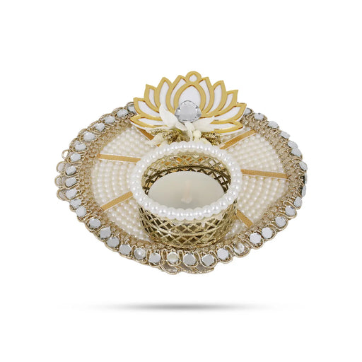 Decorative Tealight Candle With Holder - 6 Inches | Pearl Border Diya Candle For Home & Festive Use