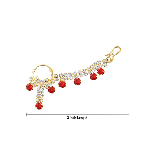 Nathu Nose Pin With Chain - 3 Inch | Multicolour Stone Nose Ring/ Nathni/ Nose Studs For Deity Decor