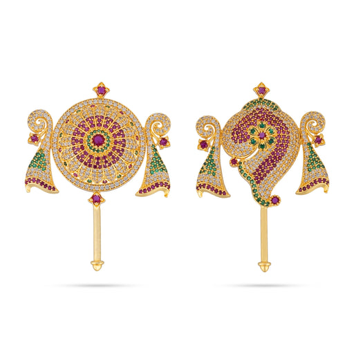 Stone Earring - 1 x 0.5 Inch | Stone Ear Studs/ Karnapathiram/ Multicolour Stone Jewellery for Deity