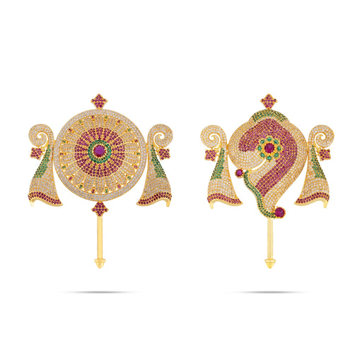 Shankh Chakra Pair - 4 x 3.5 Inches | Multicolour Stone Shanka Chakra / Artificial Jewelry for Deity