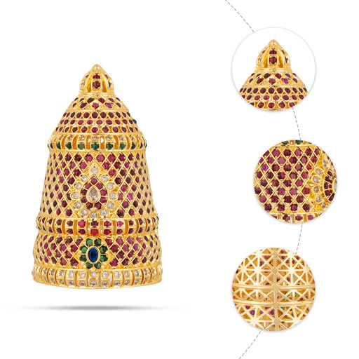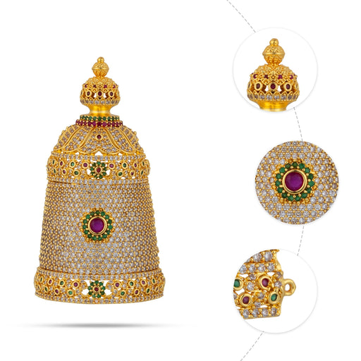 Full Crown - 3 x 1.5 Inches | Multicolour Full Stone Kireedam / Full Mukut / Full Kiridam for Deity