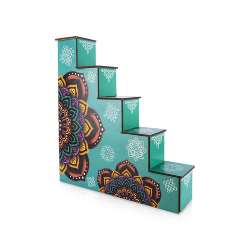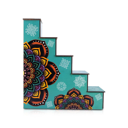The Diya Stand - 5 Steps Wooden Stand is an exquisite piece designed to bring elegance and tradition to your home, especially during spiritual and ...
