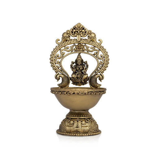 Lamp With Lakshmi Murti - 5.5 x 3 Inches | Brass Vilakku With Base/ Antique Polish Deepam for Pooja