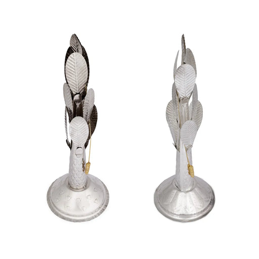 Banana Tree Pair - 17 x 5.5 Inches | White Metal Artificial Tree/ Decorative Tree For Pooja Setup