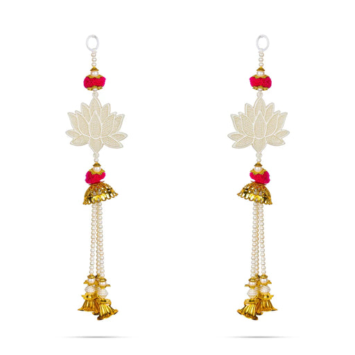• The soft shine and gentle charm of this Hanging Pair – Moti Lotus White instantly adds grace and freshness to your entrance, as a toran like this...