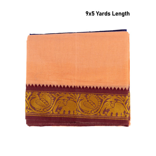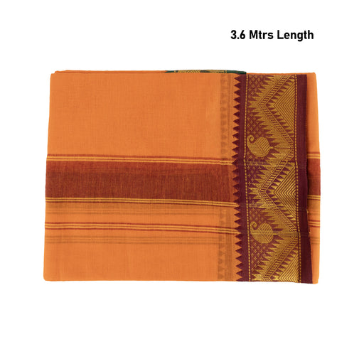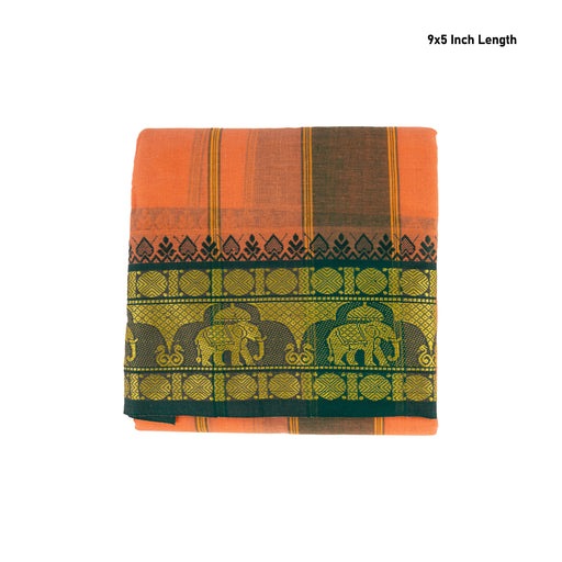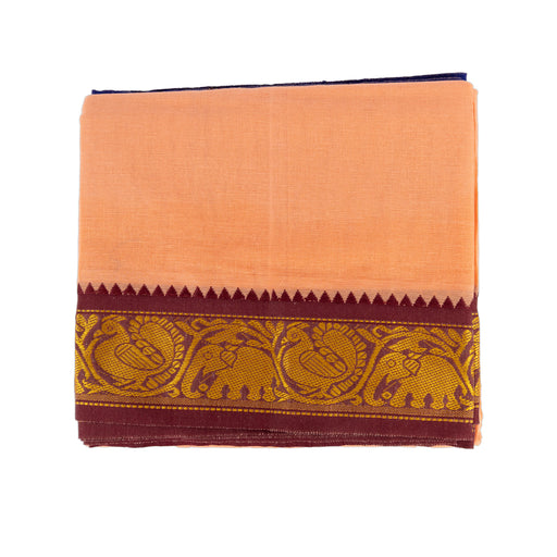 Cotton Veshti - 9 X 5 Yards | Orange Colour Jacquard Dhoti/ 3 Inch Border Vesti For Traditional Wear