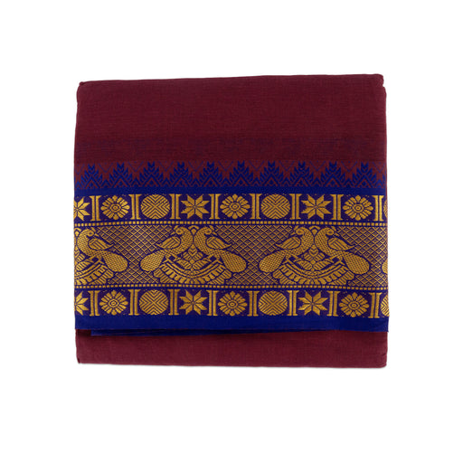 Cotton Veshti - 9 X 5 Yards | Maroon Colour Jacquard Dhoti/ 5 Inch Border Vesti For Traditional Wear