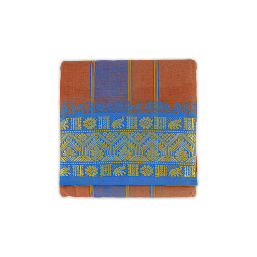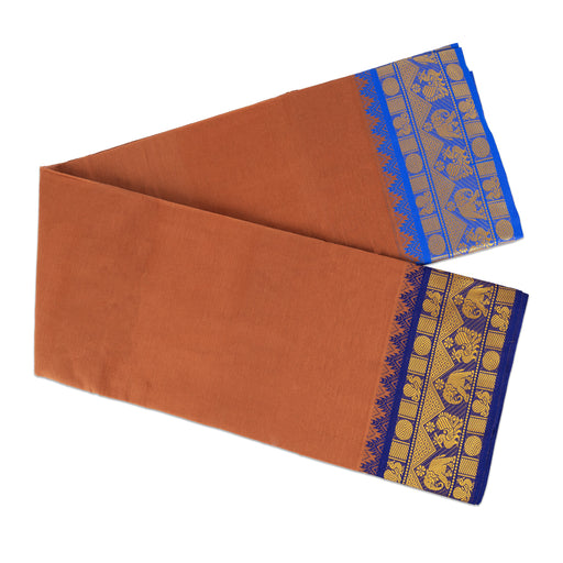 Cotton Veshti - 9 X 5 Yards | Kavi Colour Jacquard Dhoti/ 5 Inch Border Vesti For Traditional Wear