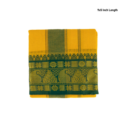 Cotton Veshti - 9 X 5 Yards | Yellow Dhoti/ 3 Inch Thillana Tower Border Vesti For Traditional Wear