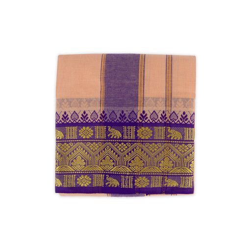 Cotton Veshti - 9 X 5 Yards | Purple Colour Jacquard Dhoti/ 6 Inch Border Vesti For Traditional Wear