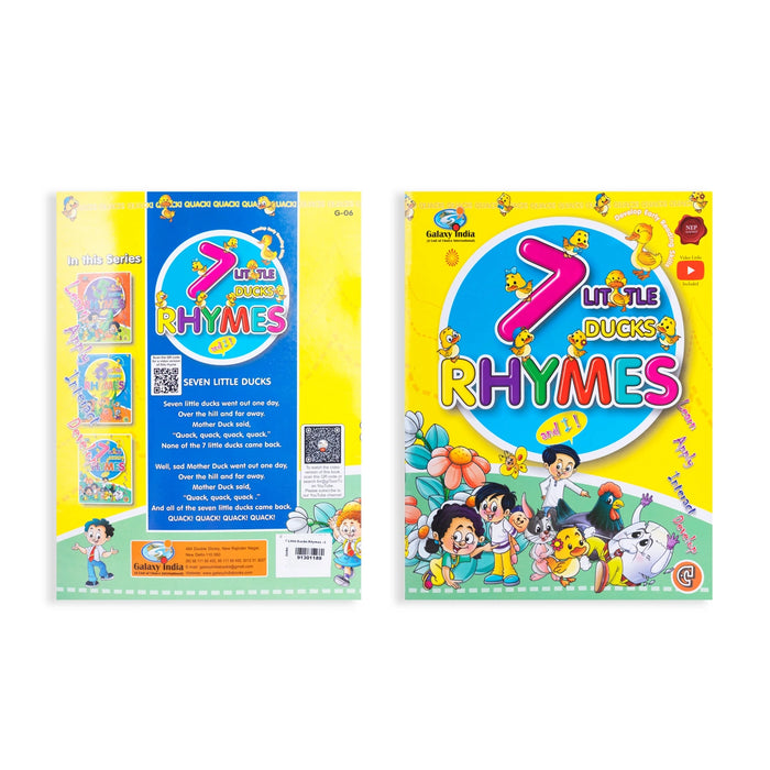7 Little Ducks Rhymes – Part C is a delightful and interactive children’s activity book designed to introduce young learners to the world of rhymes and rhythm. This book features popular nursery rhymes that captivate children’s attention while encouraging language development and enhancing their listening, speaking, and memory skills.