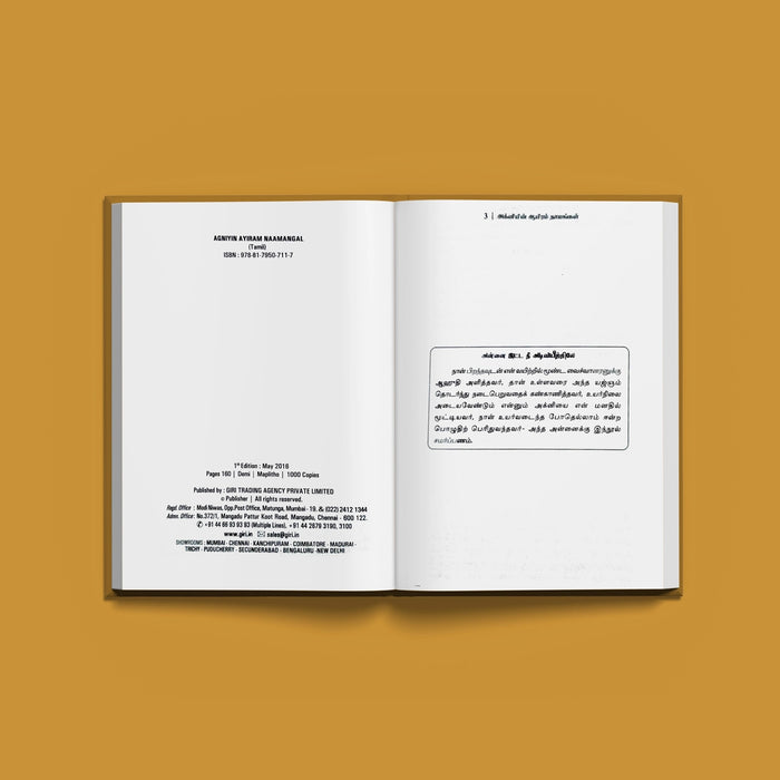 ⢠Our exquisite Hindu Religious Stotra Book: "Agniyin Ayiram Namangal" in Tamil. This captivating volume is a treasure trove of divine verses and hymns dedicated to Agni, the sacred fire deity.