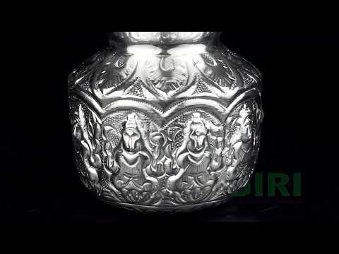 ⢠The silver kalash / lota can be filled with fresh water, turmeric, rose water, coins, javvadhu powder. And topped with coconut smeared with turmeric, and fresh mango leaves inserted on the sides.