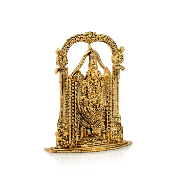 Balaji Murti With Arch - 2.5 x 2 Inches | Metal & Gold Polish Venkateswara Idol for Table Top & Car Decor