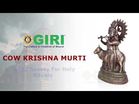 Cow Krishna Murti - 20 x 12 Inches | Copper Oxidised Cow Krishna Statue/ Krishna Idol for Pooja/ 2.800 Kgs