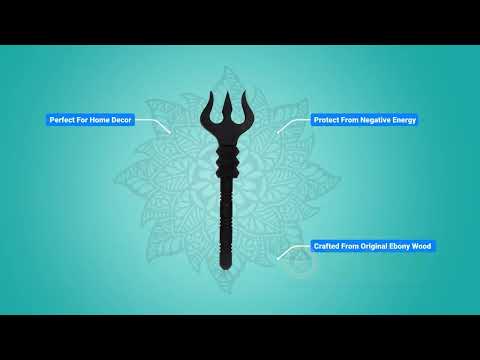 The Soolam is a divine symbol in Hinduism. Lord Shiva wields the soolam as a weapon. The three edges in the Soolam have various meanings and implications. They are commonly said to represent various trinities—creation, maintenance, and destruction; past, present, and future; and the three gunas. This Soolam is made from ebony, or karungali.
