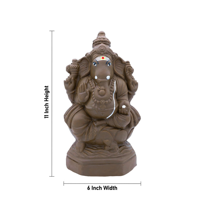 Eco Friendly Ganesh Murti Sitting On Flower Base- 10.5 x 6 Inches | Clay Vinayaka Statue for Ganapati Chaturthi