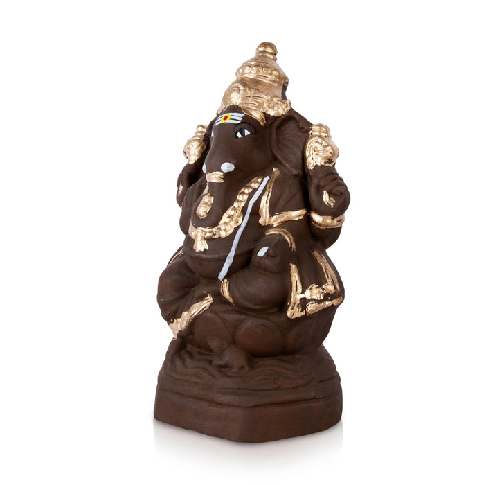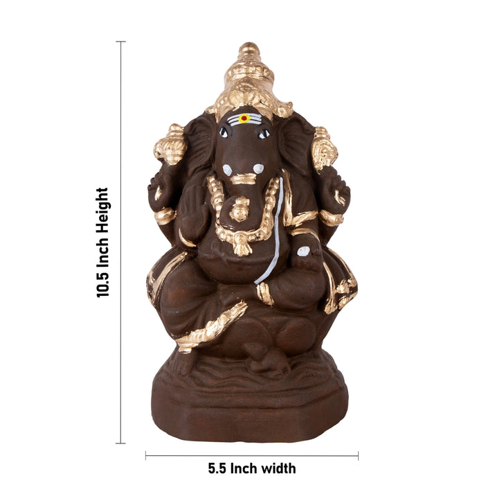 Eco Friendly Ganesha Idol With Base - 10.5 x 5.5 Inches | Eco Friendly Ganpati Idol/Clay Statue/Ganesh Chaturthi Decor