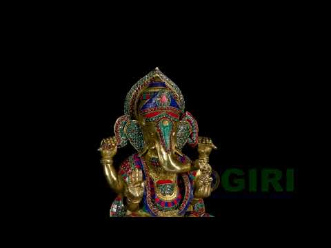 • This Ganesha statue portrays Lord vinayagr with his characteristic elephant head, pot belly, and four arms. He is depicted in a sitting position on lotus flower.