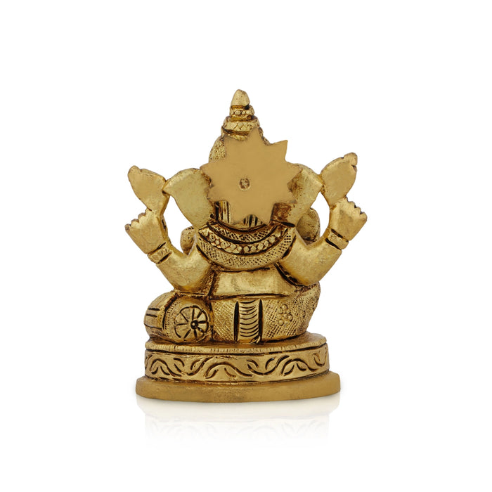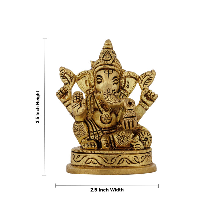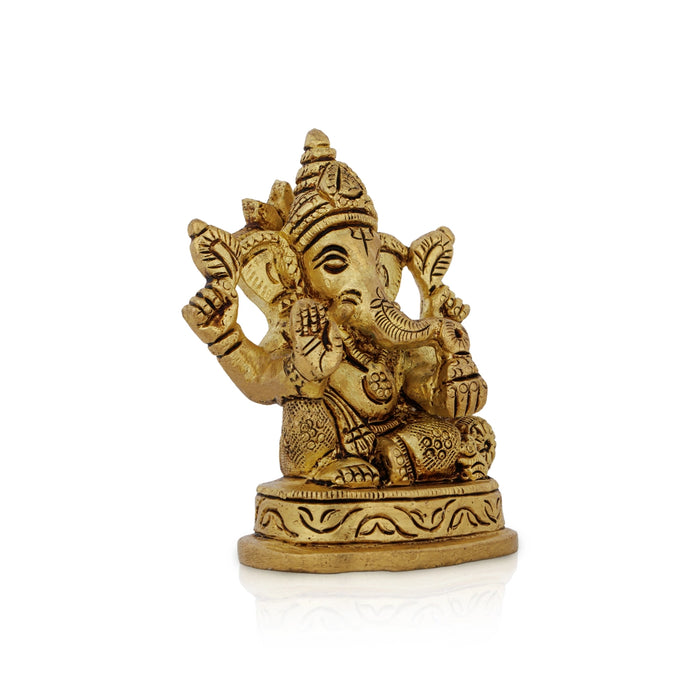 Ganesh Murti Sitting On Base - 3.5 x 2.5 Inches | Antique Brass Idol/ Vinayaka Statue With Takiya for Worship