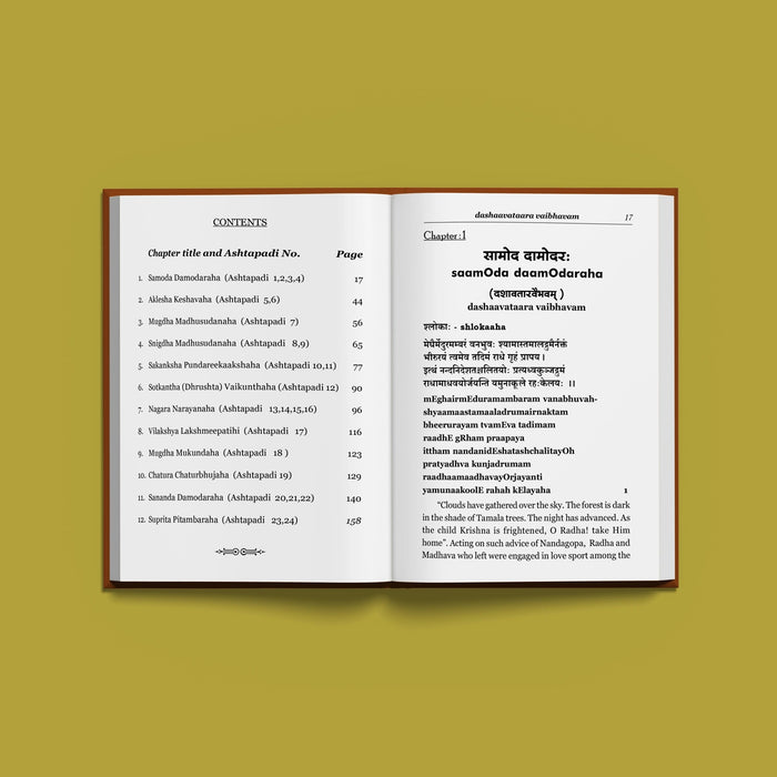 ⢠Immerse yourself in the poetic beauty of Jayadeva's Gita Govindam Ashtapadi with its original Sanskrit verses and the enriching experience of the English translations.