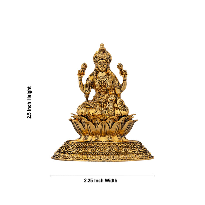 Lakshmi Idol Sitting On Lotus Base - 2.5 x 2.25 Inches | Gold Polish Laxmi Idol for Table Top & Car Decor