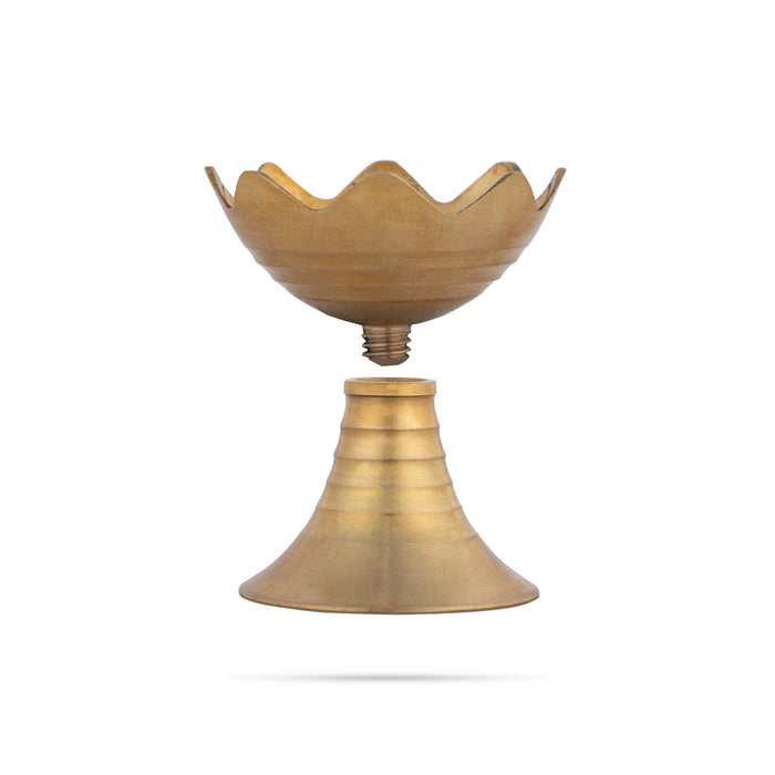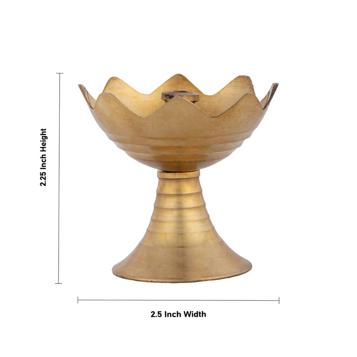 Nanda Deepam With Base - 2.25 x 2.5 Inches | Lotus Design Nanda Vilakku/ Brass Lamp for Pooja
