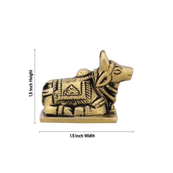 Nandi Statue With Base - 1.5 x 1.5 Inches | Antique Brass Nandi Murti/ Nandhi Statue for Pooja & Worship