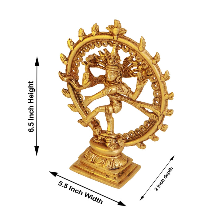 Natraj Statue Standing On Base - 6.5 x 5.5 Inches | Antique Brass Idol/ Natraja Murti for Pooja