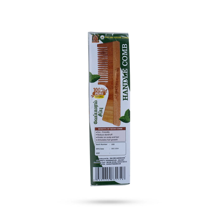 Neem Comb With Handle - 7.5 Inches | Neem Hair Comb/ Neem Wood Comb for Hair