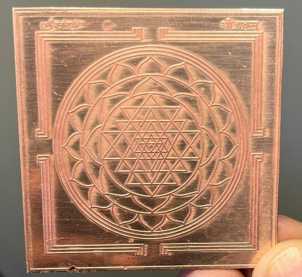 ⢠This yantra, which is revered in Hinduism, is finely engraved on a copper plate, which is said to be extremely fortunate and conductive to divine forces.