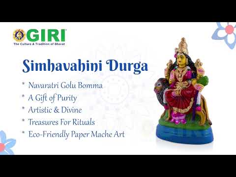 ⢠Simhavahini Durga is a traditional Kolu bommai, crafted with lightweight papermache. Each piece is painted with vibrant colours.