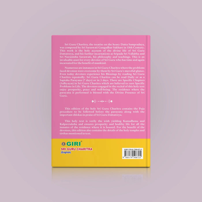 • GIRI take pride in publishing this unique Hindu Spiritual Book/Prayer book on 'Sri Guru Charitra' and 'GIRI' expresses its heartfelt thanks to the translator Sri. Kumar for his work in simple and easy to understand language which will benefit thousands of its readers.