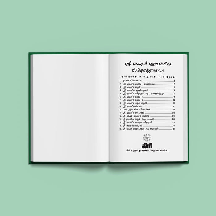 • "Sri Lakshmi Hayagrivar Stotramala" is a sacred Tamil devotional book that serves as a comprehensive collection of stotras dedicated to Sri Lakshmi Hayagrivar.