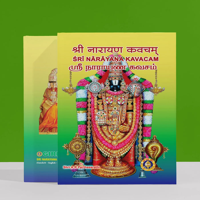 • "Sri Narayana Kavacham" trilingual book is a spiritual gem featuring Sanskrit verses, along with English and Tamil translations.