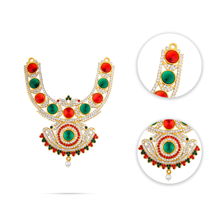 Stone Necklace & Stone Haram Pair - 13 Inches | Beads&Multicolour Stone Jewellery/ Artificial Jewelry for Deity