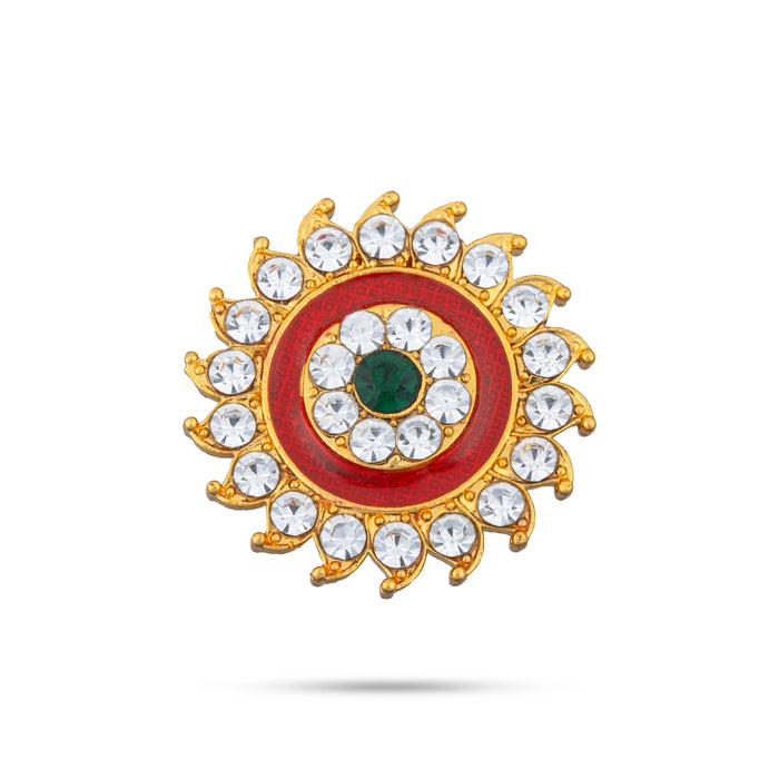 • This decorative piece, featuring radiant Sun (Surya) and Moon (Chandra) symbols, is embellished with sparkling stones that add divine charm and elegance to the deity’s appearance.