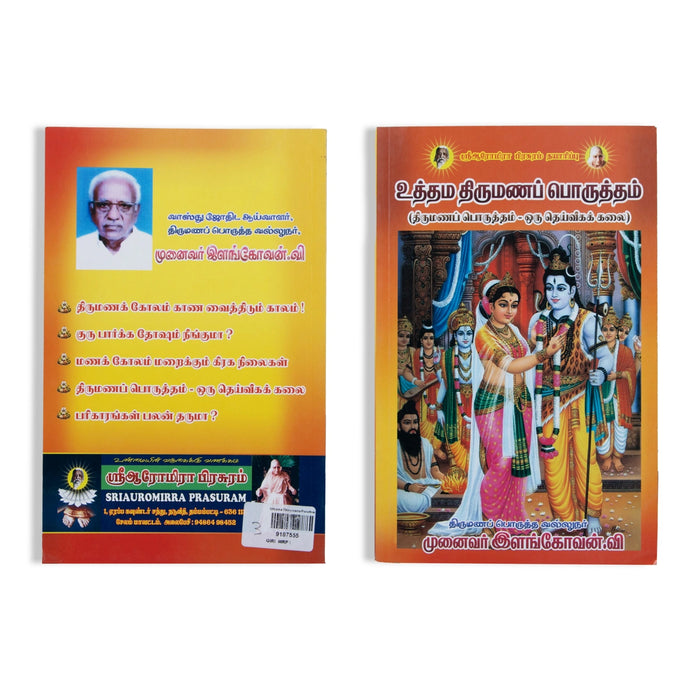 Published by Sri Auromirra Prasuram and authored by Munaivar Ilangovan, "Uthama Thirumana Porutham" is a Tamil guidebook that delves into the intricate aspects of marriage compatibility. In this enlightening book, Ilangovan explores the traditional principles and contemporary perspectives surrounding the concept of ideal marriage matches.
